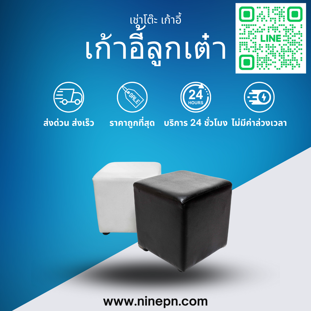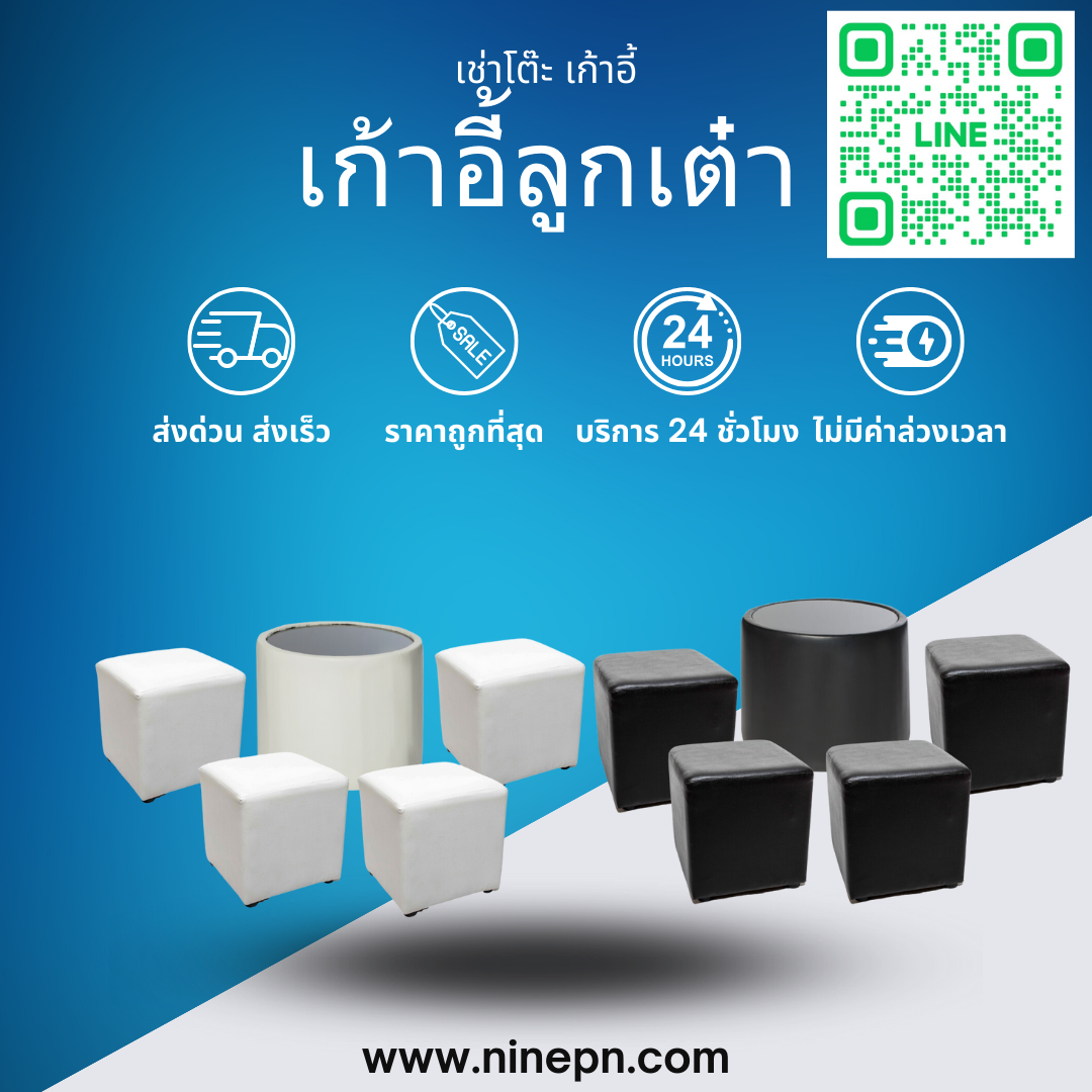 เก้าอี้ลูกเต๋า เป็นเก้าอี้อีกประเภทหนึ่งที่นิยมใช้มากในงานอีเว้นท์ งานปาร์ตี้ งานออกบูธ โดย 9PN มีให้บริการทั้งสีขาวและดำ เก้าอี้ลูกเต๋าของเราตัดเย็บและบุด้วยหนังเป็นอย่างดี และนอกจากนี้แล้ว เรายังมีโต๊ะกลางเข้าชุด ซึ่งสามารถใช้ได้ทั้งงานออกบูธ งานอีเว้นท์ งานปาร์ตี้
