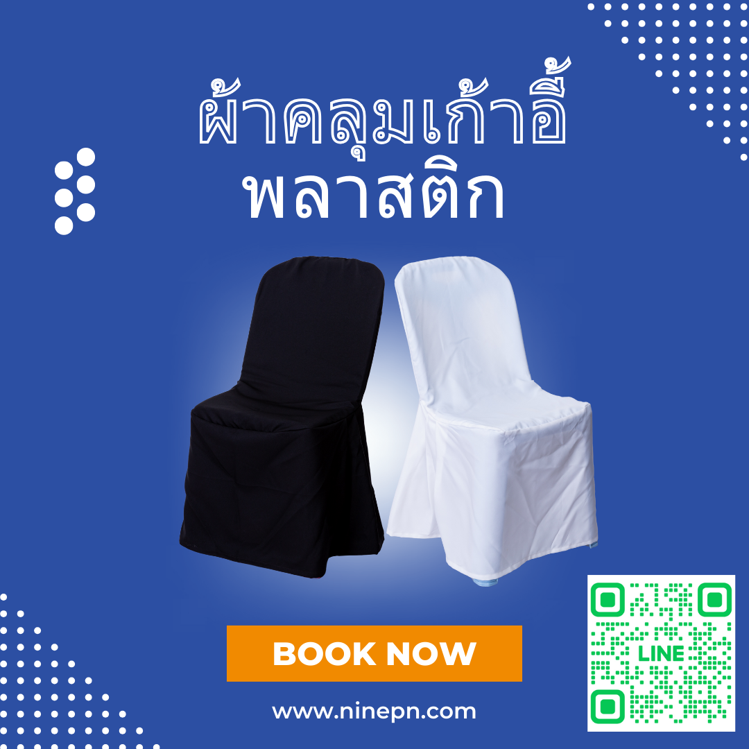 1.เช่าผ้าคลุมเก้าอี้พลาสติก เป็นบริการที่ได้รับนิยมสูงสุด เนื่องจากเก้าอี้พลาสติกนิยมใช้เป็นจำนวนมากในประเทศไทย และ 9PN มีให้บริการทั้งสีขาวและดำ สามารถเลือกได้ตามธีมงาน