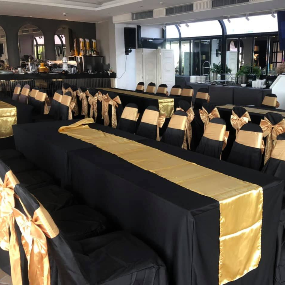 งานเลี้ยงและงานแต่งงาน: เก้าอี้คลุมผ้าสีขาวหรือสีดำช่วยเพิ่มความหรูหราและเป็นระเบียบให้กับงานของคุณninepn.com