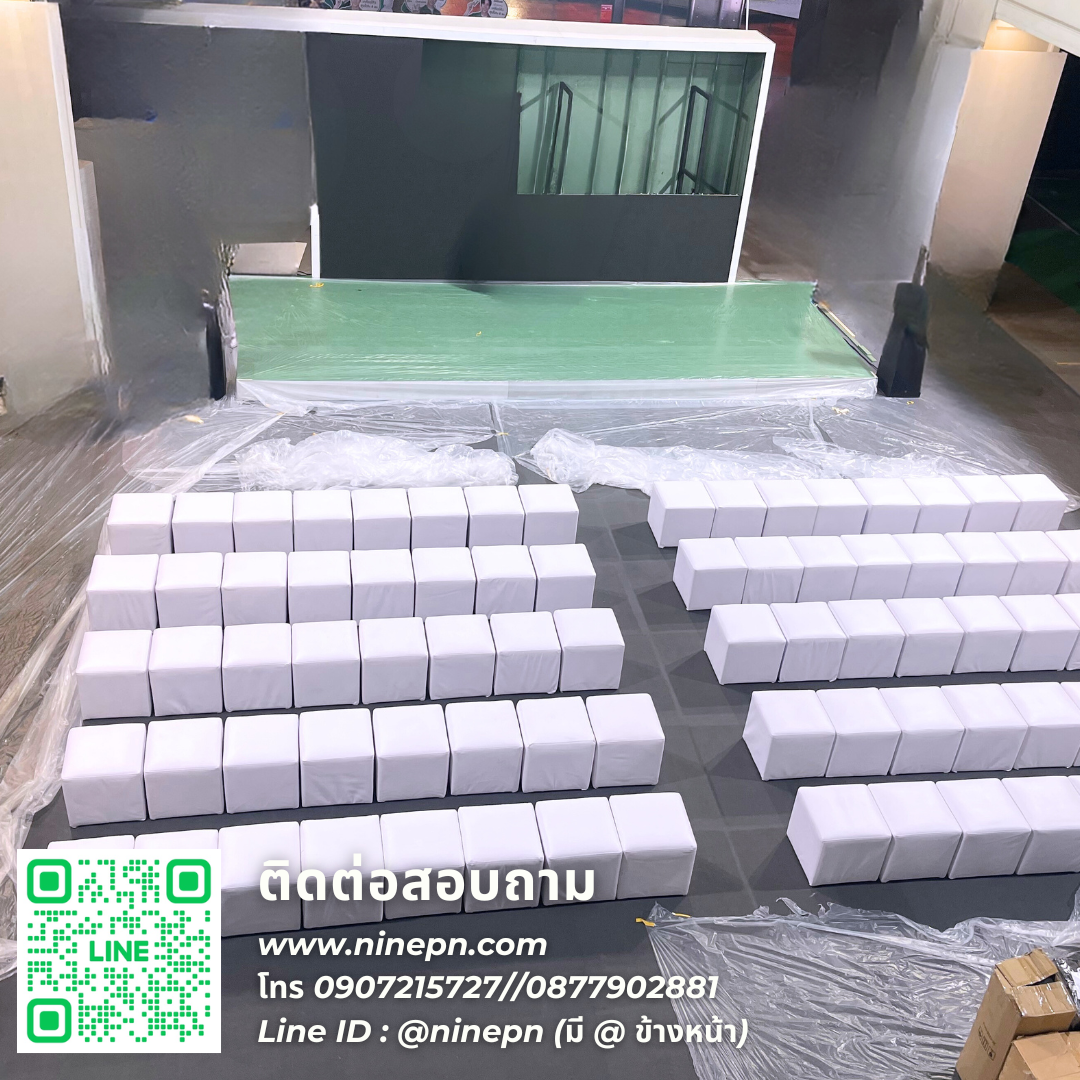 เก้าอี้ลูกเต๋าที่ให้เช่าจาก Nine PN มีการหุ้มด้วยหนังเทียมเกรดดี พื้นผิวเรียบ เนียน สะอาดตา โครงสร้างแข็งแรง ไม่โยกเยก รับน้ำหนักได้ดี และที่สำคัญดูใหม่ตลอดเวลา