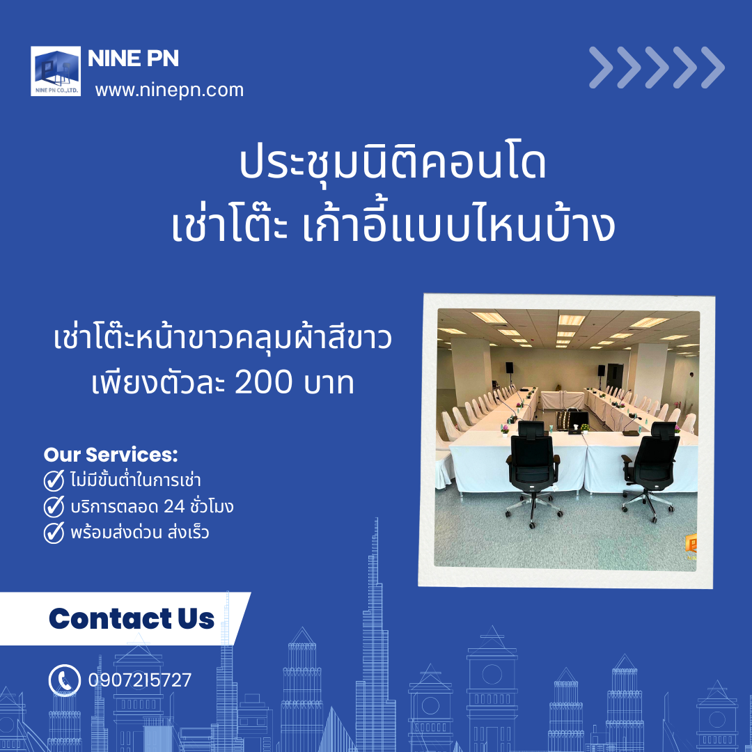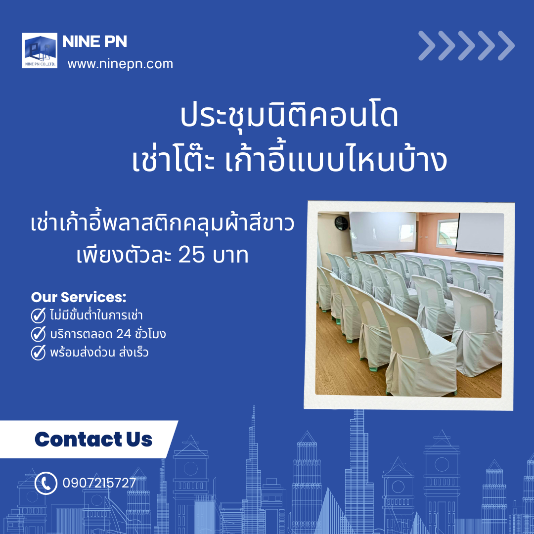 ถ้ามีเพื่อนมาถามว่า "แกๆ รู้จักร้านเช่าโต๊ะ เช่าเก้าอี้ดีๆ บ้างไหม?" คุณสามารถแนะนำ NINE PN ได้อย่างมั่นใจเลย เพราะเรามีครบทุกอย่างที่ต้องการสำหรับการจัดงาน ไม่ว่าจะเป็นการประชุมนิติบุคคลคอนโดที่ต้องดูเป็นระเบียบ หรือการจัดงานอีเว้นท์เล็กๆ ที่ต้องการความสบายและคุ้มค่า