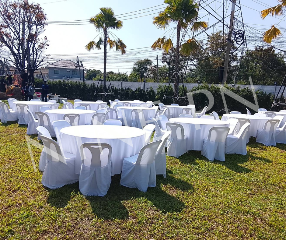 เรามีบริการ เช่าเก้าอี้พลาสติกพร้อมผ้าคลุมสีขาว และโบว์หลากสี เปลี่ยนเก้าอี้ธรรมดาให้เป็นเก้าอี้จัดเลี้ยงที่สวยงามในราคาสบายกระเป๋า