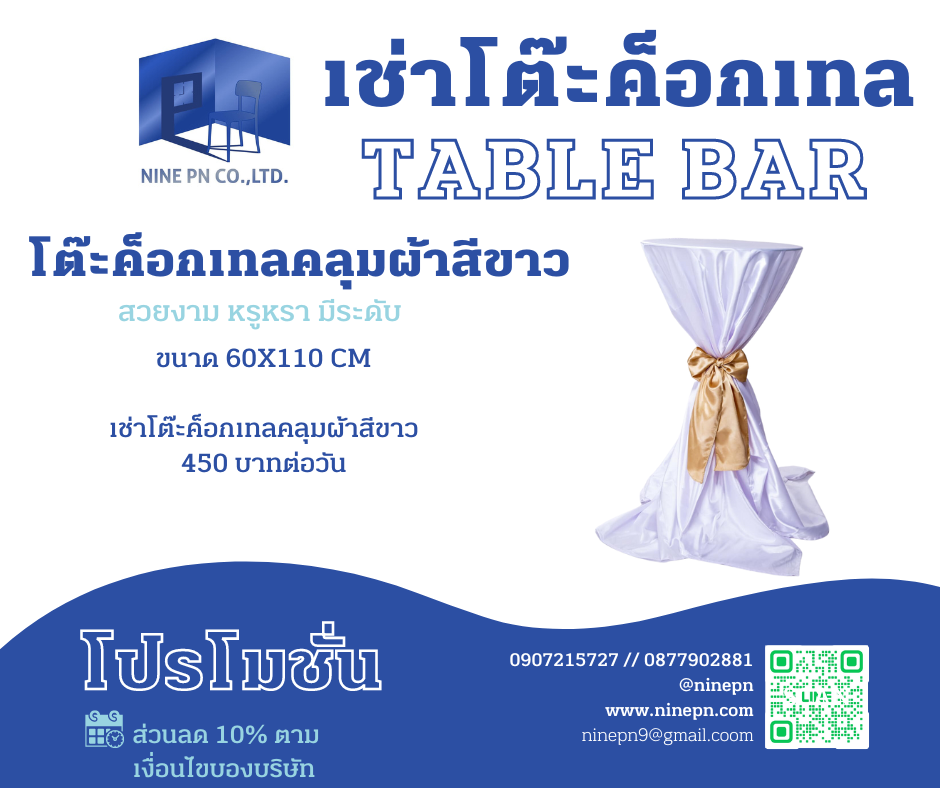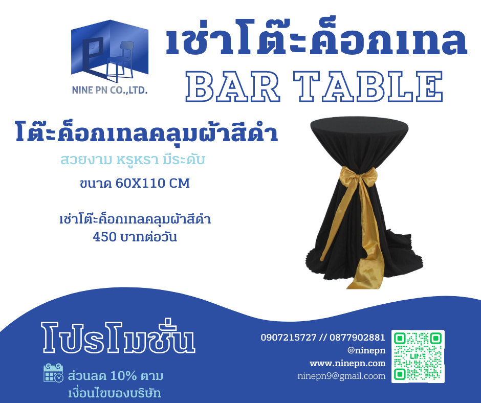 9PN ให้บริการ เช่าโต๊ะค็อกเทล มากมายหลากหลาย โดยสามารถเลือกได้ตามนี้