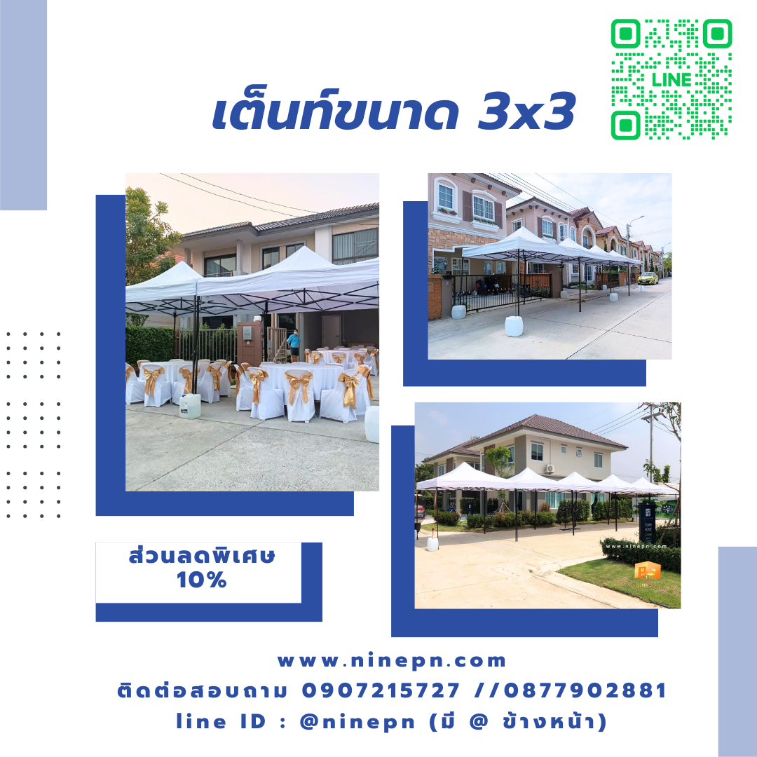 1.เช่าเต็นท์ เต็นท์ของเรามีขนาด 3X3 เมตรมีขนาดเล็ก สวยงาม สาาารถใช้งานได้ง่าย ติดตั้ง รื้อถอนได้อย่างรวดเร็ว ประหยัดพื้นที่ในการจัดงาน