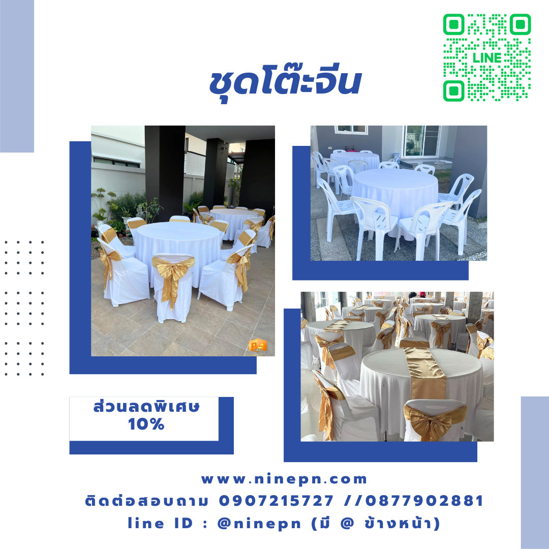 2.เช่าชุดจัดเลี้ยง เช่าโต๊ะจีน โดยผู้จัดงานสามารถเลือกใช้ได้หลากหลาย มีทั้งโต๊ะขนาด 1.2 เมตร หรือ 1.5 เมตร และยังสามารถเลือกจำนวนที่นั่ง ได้ตั้ง 8-10 ตามที่ต้องการ