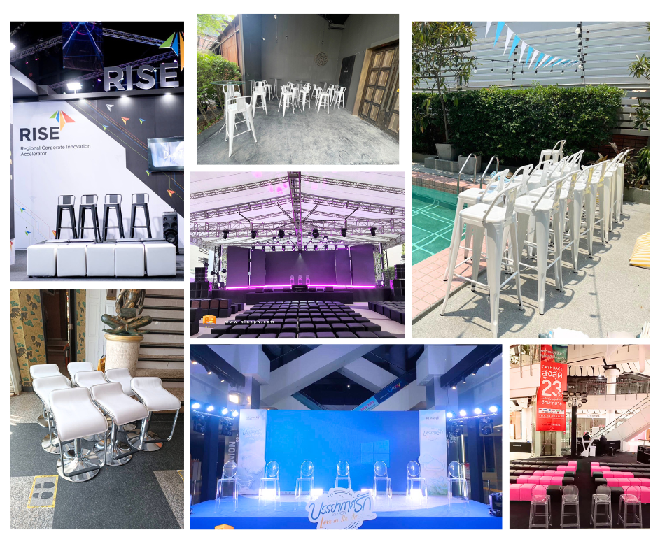 เก้าอี้บาร์เป็นเก้าอี้ที่นิยมใช้ทั้งงานอีเว้นท์ งานออกบูธ งาน exbition ต่างๆ อย่างกว้างขาง